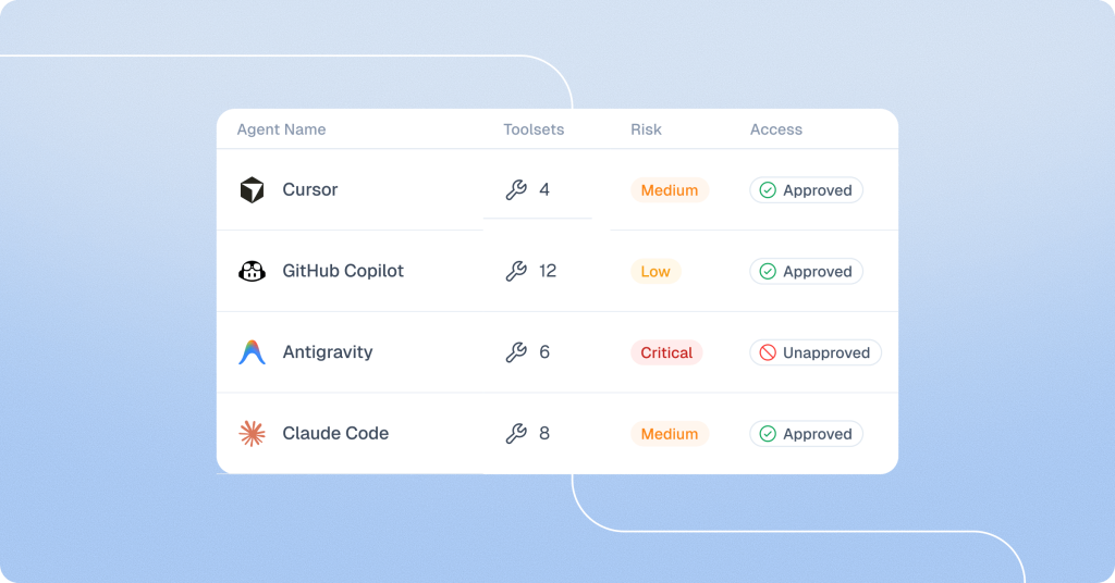 Security teams can now approve, flag, or block at the granularity needed: by tool, agent type, user, team, or environment. What used to take weeks of manual discovery and policy writing takes minutes.
