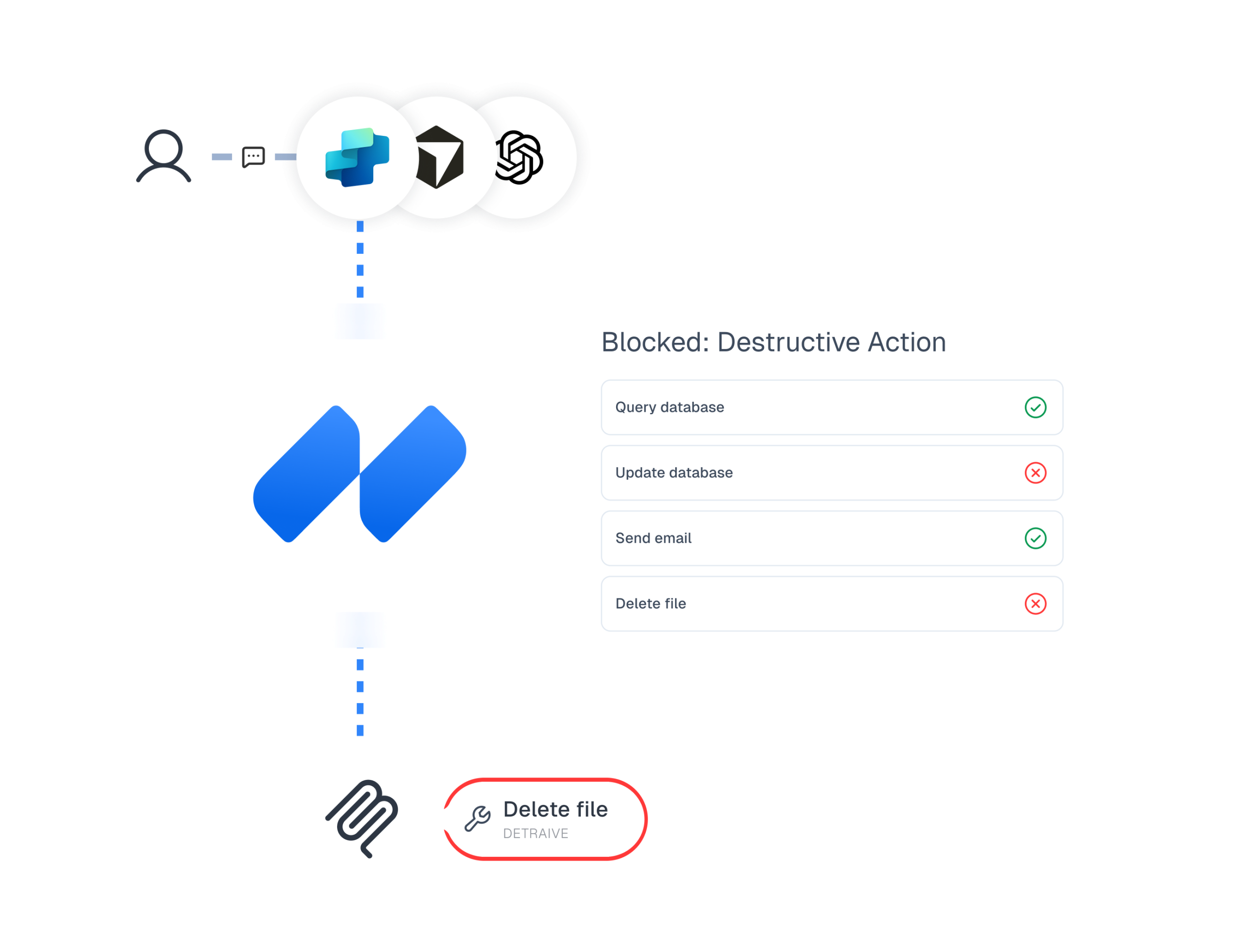 Define guardrails to restrict not only connections but agent permitted via MCP, blocking destructive actions, sensitive data leakage and enforcing least privilege access.